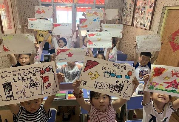 服务队始终秉承“传承红色基因,传递爱与希望”的宗旨,充分高密市的挖掘红色资源,汲取红色营养,除开设书法、绘画、趣味数学、素质扩展等课程外,还充分将党史学习教育融合在日常的支教课程中,培养孩子们的爱党、爱国之心。