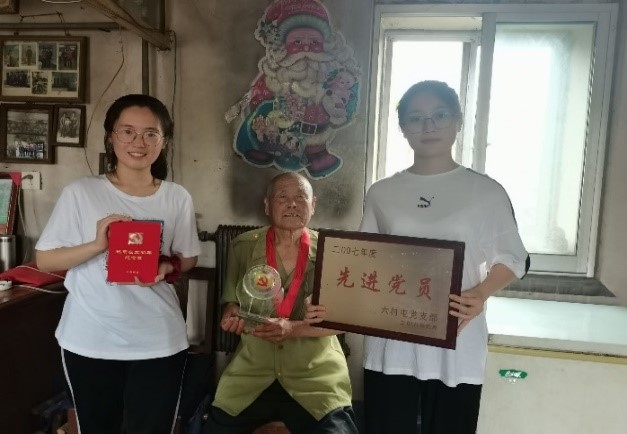 队员在高家村进行党史宣讲,宣讲结束后,三位队员向党员爷爷了解了他加入中国共产党的故事,并且听爷爷向我们讲述党史的知识,我们在爷爷的耐心讲述中,领悟党史,学习党史。