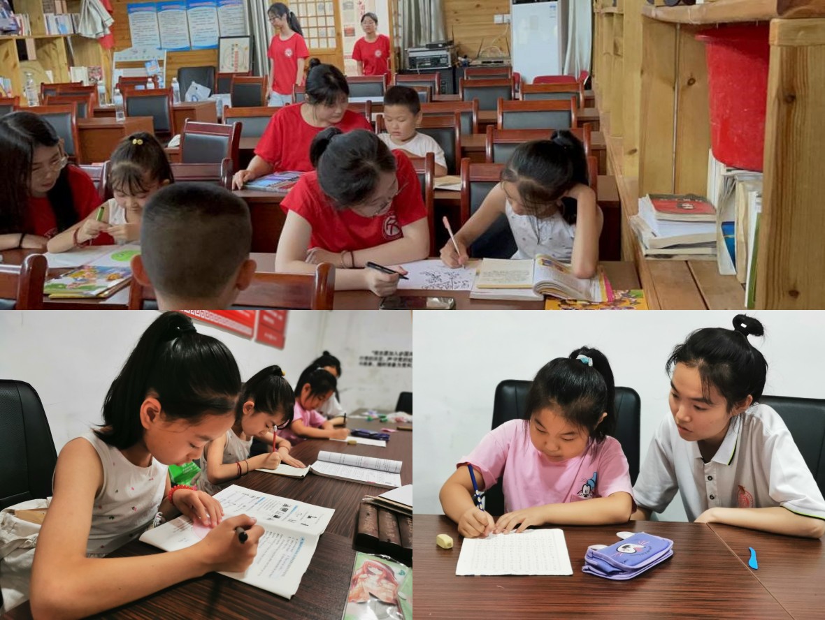 志愿支教组成员为村里的孩子们集中授课,内容包括辅导暑期作业、推广软笔书法和教授普通话知识。活动期间,队员们为孩子们耐心讲解暑假作业中的难题、教授普通话的正确发音,手把手进行书法教学,传承中华传统文化,诵读党史诗歌,颂扬红色精神。队员们认真备课授课,将自身专业技能与所教授的知识相结合,在授课中展现了良好的教学实训能力。