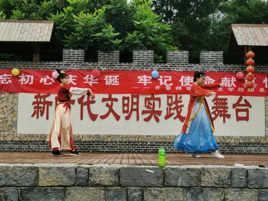 7月11日晚,一场由服务队队员们举办的三下乡文艺晚会在石子口村广场上演。晚会节目中既有体现汉服文化的舞蹈《醉太平》,也有融说学逗唱为一体的相声《倒打灯》,也有和村里孩子们合作演出的舞蹈《你笑起来真好看》。最后,晚会在一曲激越的《没有共产党就没有新中国》的合唱中顺利结束。这次晚会拉近了学校与乡村、队员与孩子们之间的距离,展现了文学院学生开拓进取的青春风貌。在这场文艺汇演中大家深刻感受到了浓浓乡味、悠悠乡愁、亲亲乡情。