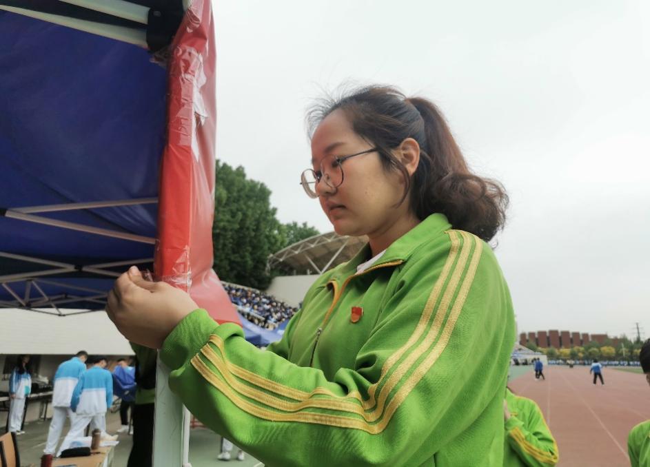在本次志愿服务中,学生党员以青春之温暖搭建学生党员服务平台,以青春之奉献维持会场的秩序,用实际行动展现学生党员的责任与担当。在运动会开幕式前,学生党员志愿者们开展帮助搬运饮用水、整理桌子、搭防晒棚、协助院学生会组织同学有序进场等志愿活动,操场的每块场地都能见到身着绿色院服、佩戴着党徽的忙碌身影,勤勤恳恳,任劳任怨,严格以一名党员的标准来要求自己,时时刻刻发扬志愿奉献精神。