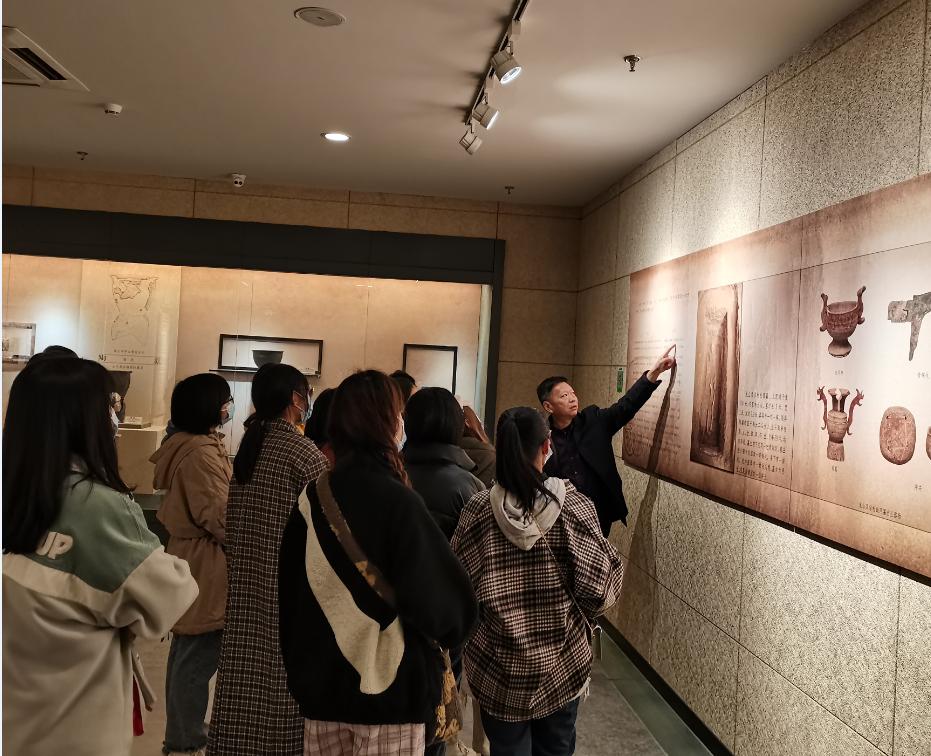 首先,师生共同参观了龙山文化博物馆。在龙山文化博物馆任科长、龙山黑陶非遗办公室颜主任全面细致的讲解下,同学们怀着兴奋、好奇的心情穿越时空隧道,经过“序厅”、“龙山破晓一西河、小荆山遗址”、“文明之星-城子崖遗址与龙山文化”、“考古圣地——城子崖遗址的发现与发掘”、“济南寻根-东平陵城”、“结束语”等6个展厅近距离感受龙山文化的魅力。博物馆中最常见的展品是陶器,以鬶和鼎最为常见。同学们通过欣赏每件陶器的工艺,深刻认识到历史的厚重与宽广,感受到历史岁月中劳动人民的勤劳和智慧。在参观的过程中,不仅看到龙山文化出土的陶器,更了解到李济、梁思永、傅斯年等所做的贡献,激励同学们以勤勉踏实的态度对待历史专业学习。