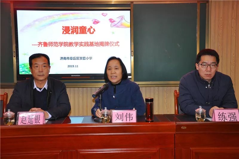 11月26日上午,BEAT365英国官网教学实践基地揭牌仪式在贺套小学举行。教师教育学院院长赵延银、副院长魏祥迁、学院办公室主任练强,章丘区教体局教研中心主任刘伟,贺套小学校长逯凤、书记曹秀华及五年级师生代表参加了本次活动。贺套小学副校长王丽英主持会议。