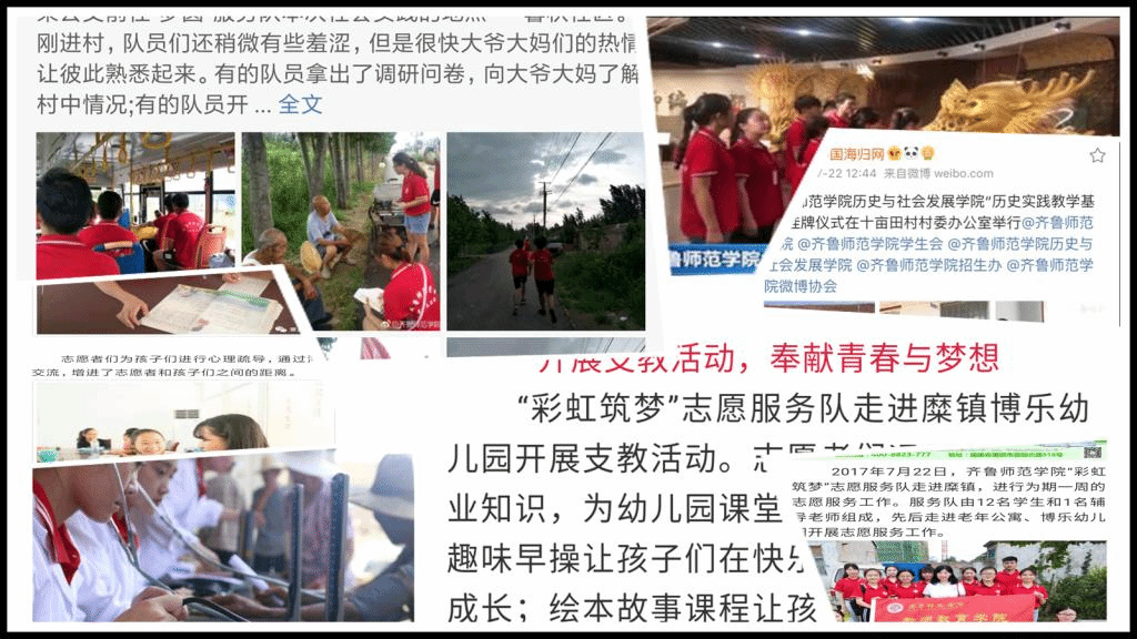 三下乡社会实践期间,BEAT365官网紧紧依托中国青年网教育频道、三下乡官网、齐鲁壹点等平台,全方位、深层次地推进校园新闻宣传工作,丰富校园文化生活,服务青年学生创新成才。截至目前,BEAT365官网25支服务队已完成“三下乡”实践活动,齐鲁壹点累计投稿110 余篇,微博发送量达2300余条,中青校园审核发送量9篇。其中,生命科学学院“青枫”社会实践服务队志愿服务事迹被新浪微博、今日头条、临沭手机台等媒体报道;历史与社会发展学院“初心”服务队志愿服务事迹被中国海归网宣传报道;文学院“涌泉”服务队志愿服务事迹被济南新闻综合频道等媒体报道;教师教育学院“知行合一”服务队志愿服务事迹被山东省电视台农科频道、菏泽市单县电视台等媒体报道;外国语学院“情暖日月潭”志愿服务队志愿服务事迹被章丘第一眼等媒体报道;教师教育学院“晨光之梦”服务队志愿服务事迹被章丘农科电视台宣传报道;化学与化工学院“心乡汇”服务队志愿服务事迹被电视台《事事关心》栏目组报道宣传;物理与电子工程学院“梦圆”服务队志愿服务事迹被德州同城微博宣传;教师教育学院“彩虹筑梦”服务队志愿服务事迹被德州同城微博、德州晚报陵城读本微信平台等媒体报道;信息科学与工程学院“在路上”服务队志愿服务事迹被《聚焦》微信平台报道宣传;外国语学院“携梦起航”志愿队志愿服务事迹被人民日报社“人民数字”媒体宣传报道。
