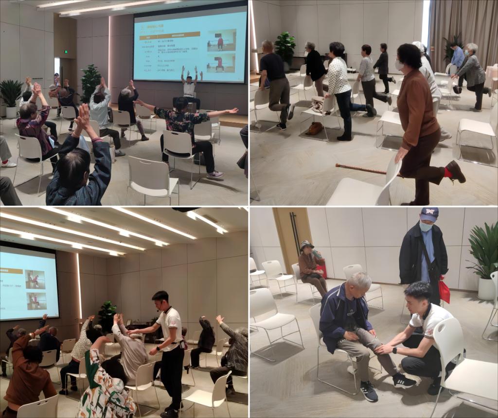 参观结束后,老同志们全程体验了泰康之家“老年专业团训课程-腰腿功能改善”运动课程,让老同志们了解到如何正确进行健身锻炼、如何根据身体状况选择适合的健身方式,并针对老年人身体机能与生理特点,介绍如何科学设置全身综合性训练课程,有效预防跌摔倒、缓解腰腿疼痛、调理慢性疾病、强化身体机能等老年人常见健康问题。