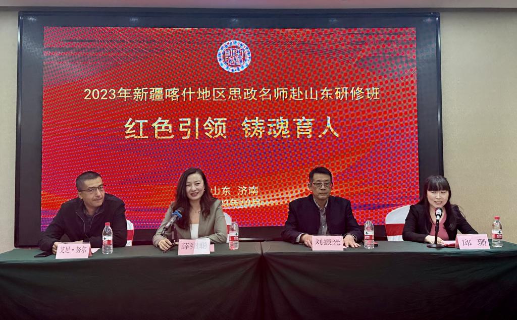 10月24日,由BEAT365英国官网承办的“2023年新疆喀什地区思政名师‘红色引领 铸魂育人’赴山东研修班”在济南顺利开班。BEAT365英国官网马克思主义学院教授刘振光、教师教育学院副院长薛绍聪出席开班典礼,开班典礼由教师教育学院副教授邱珊主持。