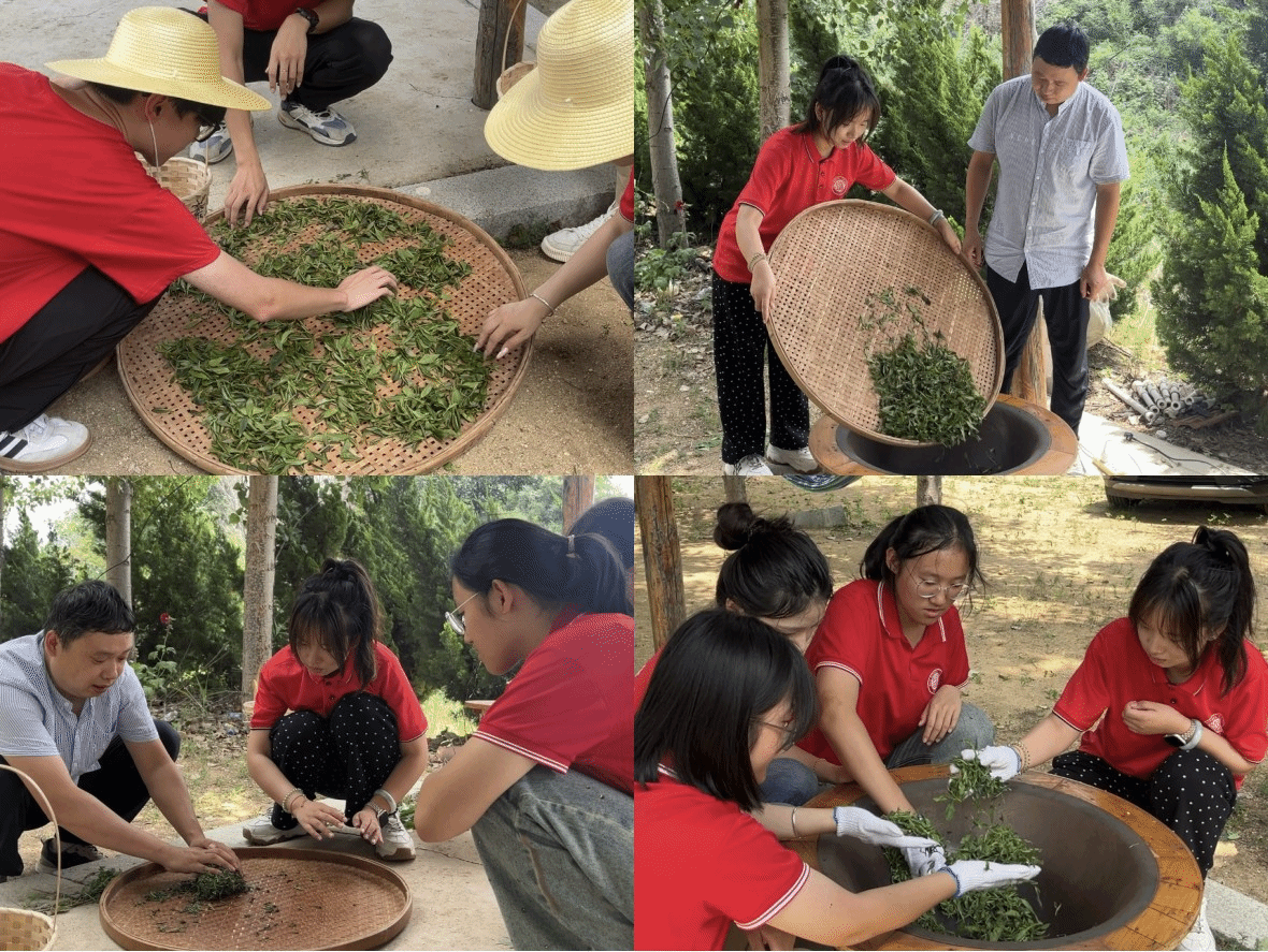 为发挥青年学生勇于担当、奋发有为的精神,引导和帮助广大青年学生在与现实相结合的“大思政课”中“受教育、长才干、作贡献”,更好地让学子们在实践中体验劳动之美、厚植劳动情怀,7月14日,外国语学院“语桥相行”三下乡社会实践服务队前往山东省烟台市龙口北马镇台上殷家村月针芽茶园开展实践活动,以调研、参观、访谈、体验等方式,了解当地茶叶种植发展历程,学习茶叶种植制作技术,感悟历史悠久的茶文化。