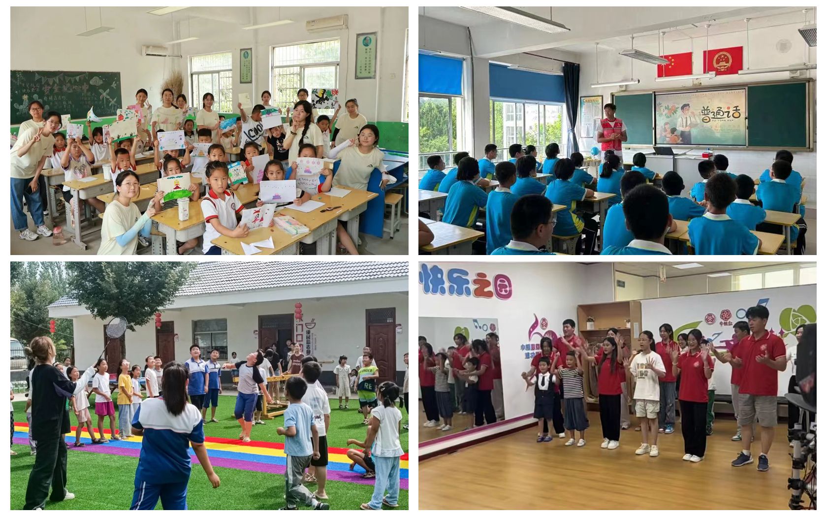 作为培育未来幼儿教师栋梁的摇篮,学前教育学院一直心系乡村儿童成长。暑期,学院多支志愿服务队在济南章丘刁镇希望学堂、菏泽鄄城箕山完小、烟台栖霞龙腾社区、菏泽成武晏谷堆村党群服务中心等地开展支教活动。队员们通过书法、绘画、声乐、舞蹈、普通话、体育游戏等丰富多样的课程与活动,激发孩子们的学习兴趣,拓宽他们的视野,为孩子们点亮了知识的灯塔,照亮了前行的道路。同时,还通过防溺水安全教育、交通安全宣传等活动,提高了孩子们的安全意识和自我保护能力。这些活动不仅使学生们将“第一课堂”所学知识得到充分运用,更切实发挥了“第二课堂”作为“第一课堂”延伸和必要补充的作用,同时也展现了当代大学生助力乡村文化振兴的责任与担当。