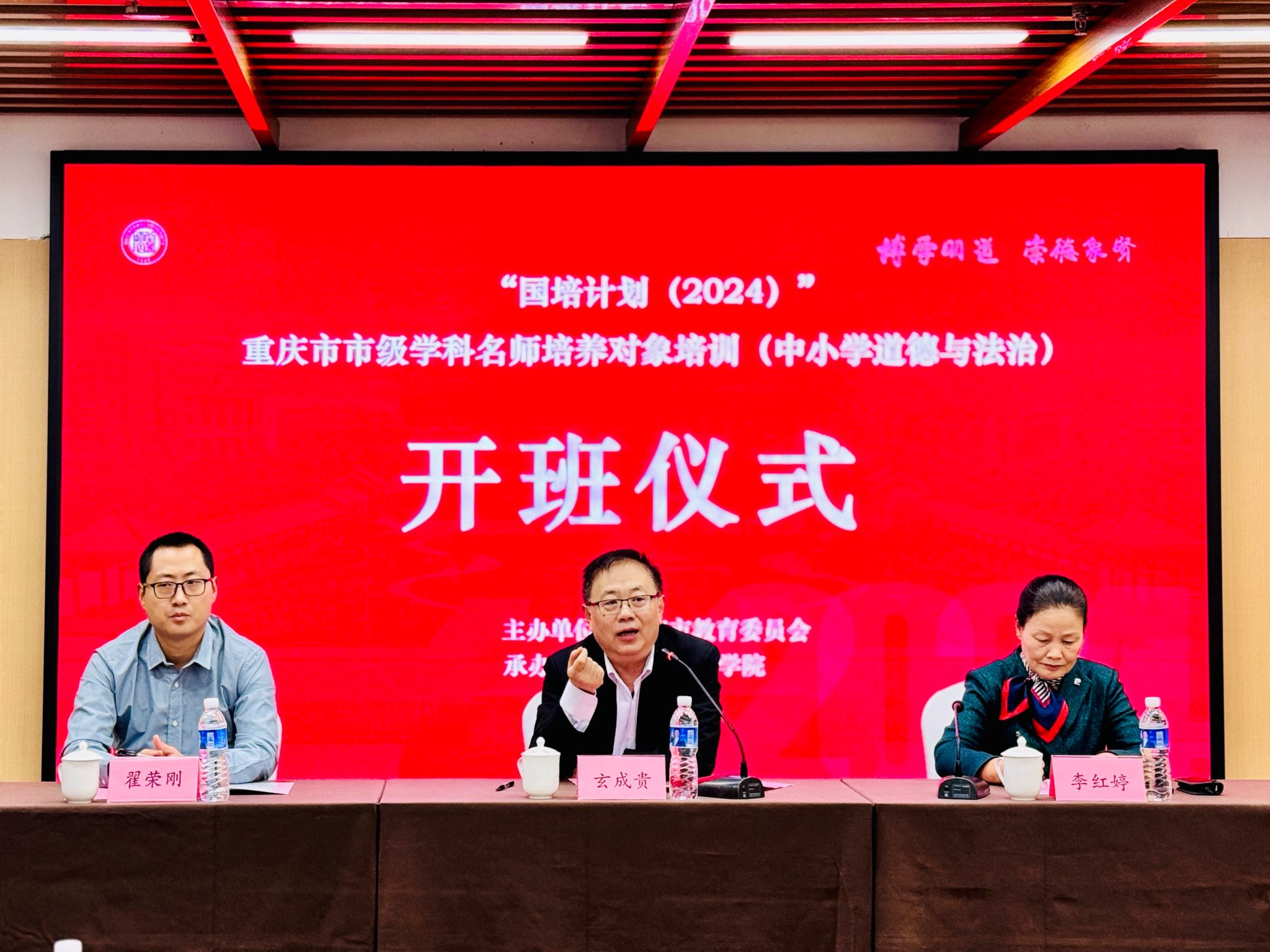 12月4日上午,由重庆市教育委员会主办、BEAT365英国官网承办的“国培计划(2024)”——重庆市市级学科名师培养对象培训(中小学道德与法治)在重庆市顺利开班。学校中小学教师远程教育中心主任玄成贵,项目首席专家、BEAT365英国官网教授李红婷,项目负责人翟荣刚参加开班仪式。开班仪式由翟荣刚主持。