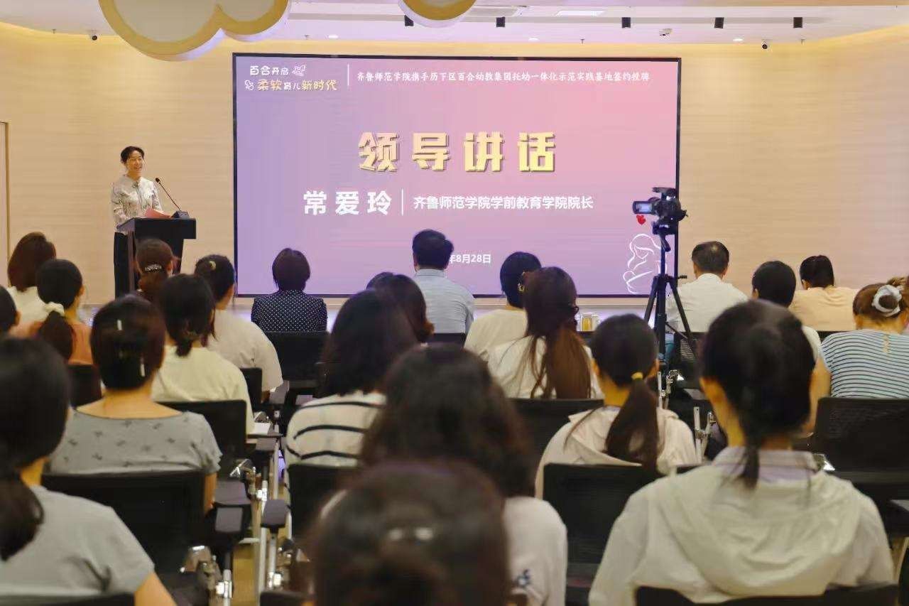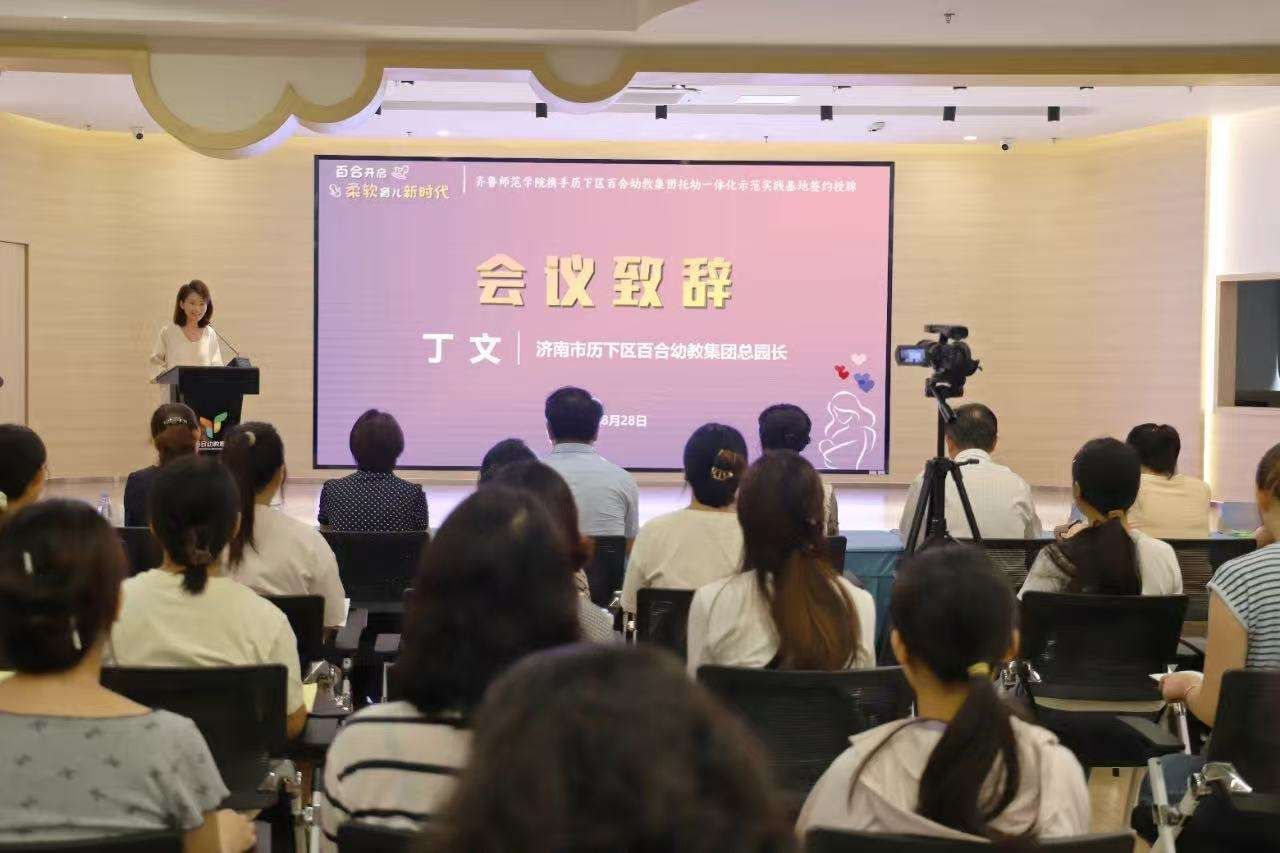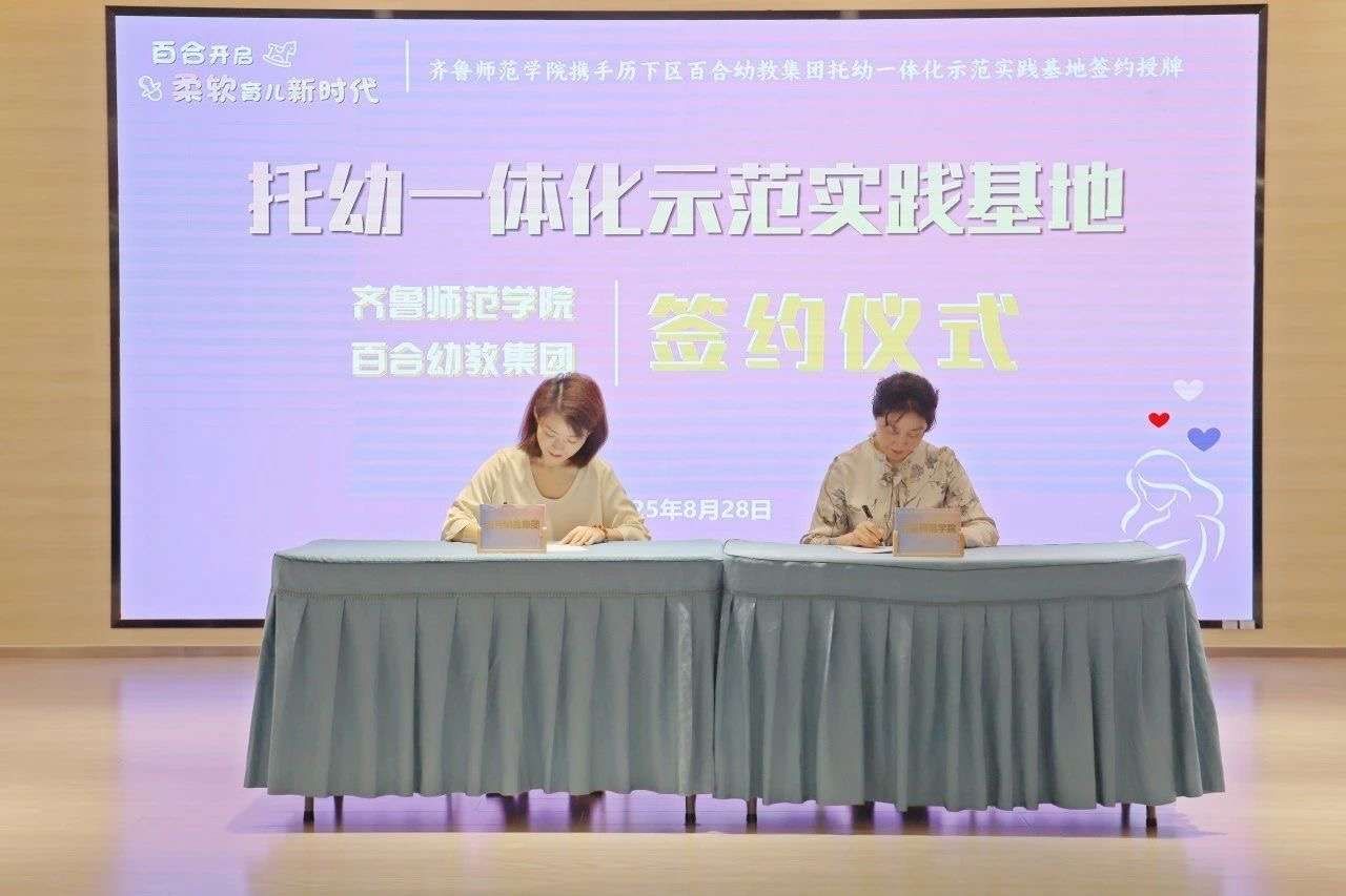 8月28日,山东省婴幼儿发展与健康管理产业学院与济南市历下区百合幼教集团成功举行“托幼一体化”示范实践基地揭牌暨签约仪式。此次合作旨在有效打通学前教育与托育服务之间的衔接壁垒,为区域内0~6岁婴幼儿提供更加优质、连贯的早期发展支持。基地的成立,标志着山东省婴幼儿发展与健康管理产业学院在“托幼一体化”领域实现创新探索与落地实践的重要突破,彰显了学校服务社会、引领幼教发展的责任担当。