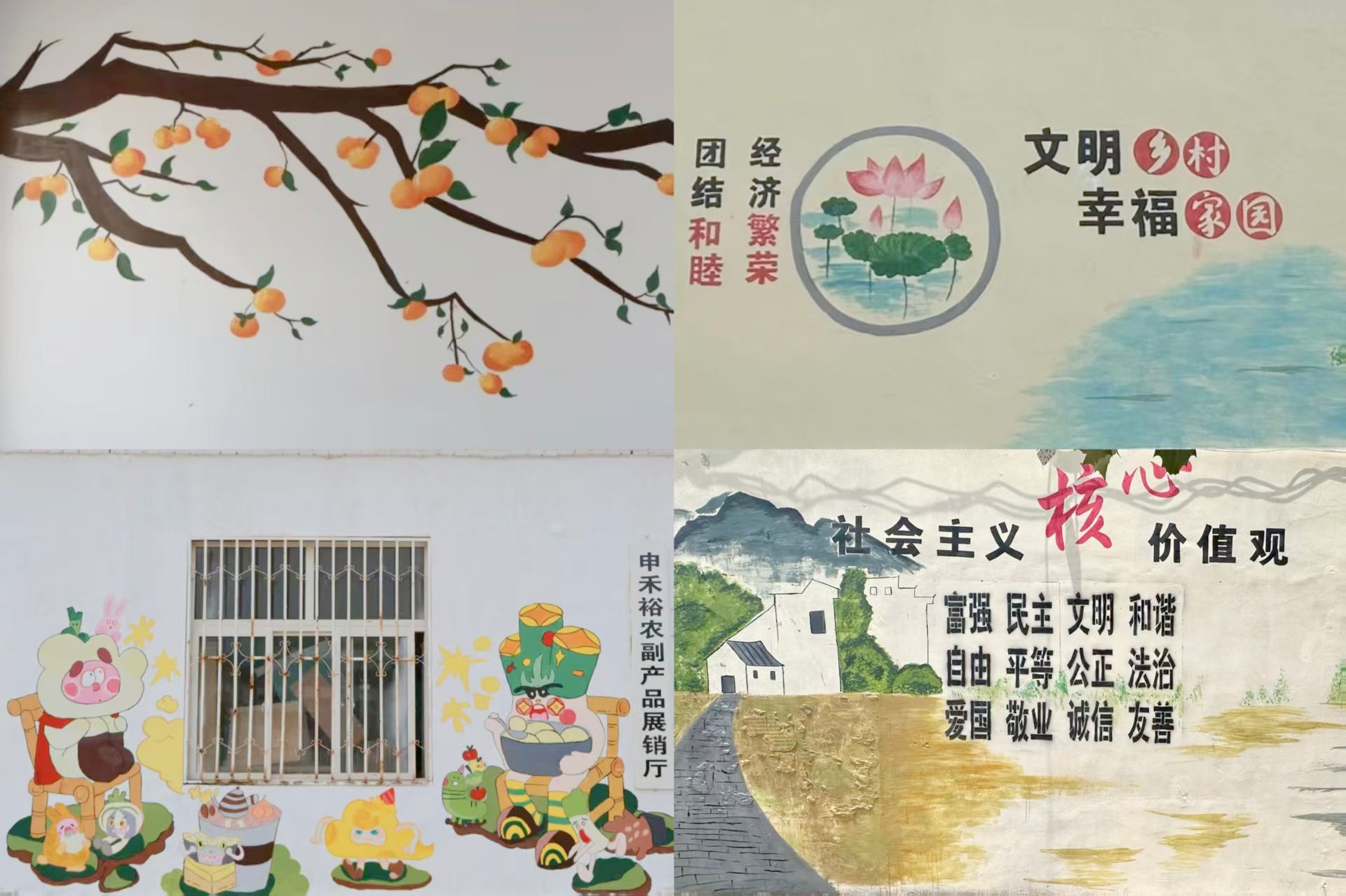 志愿服务队跨越济南、烟台、青岛、威海等地市,在多个乡村推进墙体彩绘行动。队员们锚定“文化振兴”目标,将优秀传统文化与乡村发展需求有机结合:一方面,聚焦精神传承,把党的先进理念、优秀传统文化等内容,以墙绘形式融入乡村空间,让村民在生活场景中潜移默化接受文化教育,厚植爱党爱国情怀;另一方面,结合美丽乡村建设、产业特色,融入田园风光、民俗符号、产业元素,使墙绘既具文化传播功能,又成为展现乡村魅力的窗口。创作中,队员们克服酷暑,以专业与热忱投入创作。一幅幅墙绘作品,不仅美化乡村人居环境,更激活乡村文化自信,为产业发展注入文化动能,实现文化传承、美化人居环境与产业赋能的协同推进,用艺术之笔绘就乡村振兴多彩画卷。