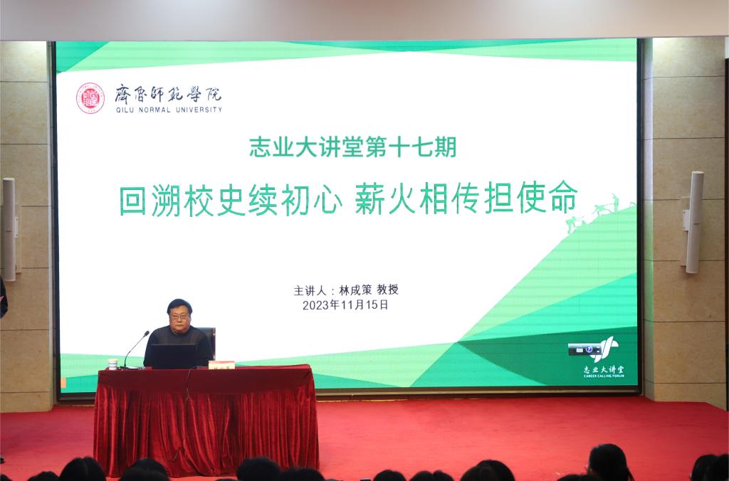 为帮助学生感知校园文化,感悟校史底蕴,培育爱校、荣校、兴校情怀,增强对学校的归属感、认同感和自豪感,11月15日下午,学生工作部(处)联合离退休工作处在章丘校区第一学术报告厅举办志业大讲堂之校史教育专题讲座。学校原科研处处长、硕士生导师林成策教授受邀作题为《回溯校史续初心·薪火相传担使命》的专题报告。学生工作部(处)部长朱礼恒主持报告会,各二级学院辅导员及学生代表共300余人到场聆听。