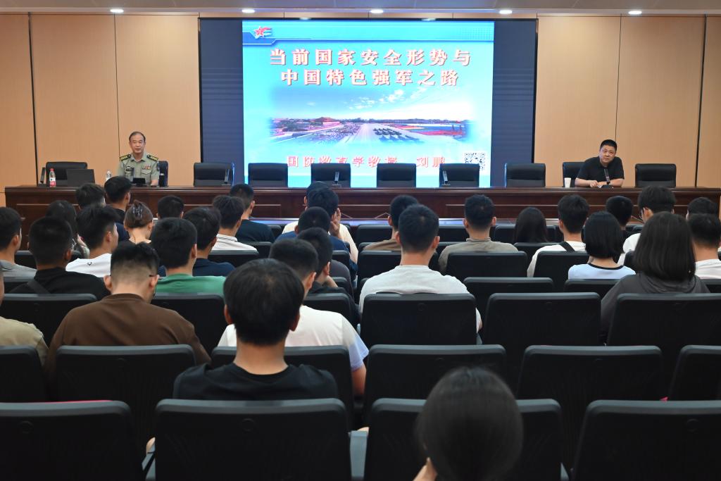 6月30日下午,原济南军区军事教研室主任刘鹏教授受邀到校作主题为“当前国家安全形势与中国特色强军之路”的专题讲座。学校武装部相关工作人员、2023级新生辅导员、军事理论课教师、拟参选2023级学生军训教官以及学生代表参加讲座。讲座由学校武装部副部长张帜主持。