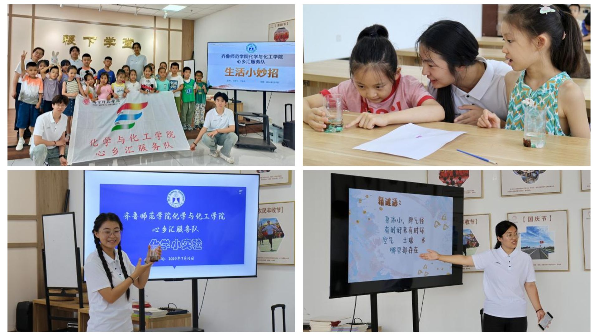 课程筹备之际,队员们植根齐文化、紧扣儿童学习兴趣与需求,充分发挥学科所长,精心编纂教案、细心挑选素材、反复试讲内容,力求每一节课生动有趣。他们为“齐小童”们准备了齐文化故事阅读课、科学知识科普课、趣味化学实验课、生活小妙招实践课等特色课程。孩子踊跃参与,家长和社区工作人员交口称赞,公益课堂授课成效斐然。本次活动丰富了儿童暑期生活,播撒了科学与文化的种子,激励孩子们学榜样见贤思齐、学知识立志成才,让心灵在汲取历史的韵味与科学的魅力中茁壮成长,让志愿服务在联通古今的智慧中相遇交融。
