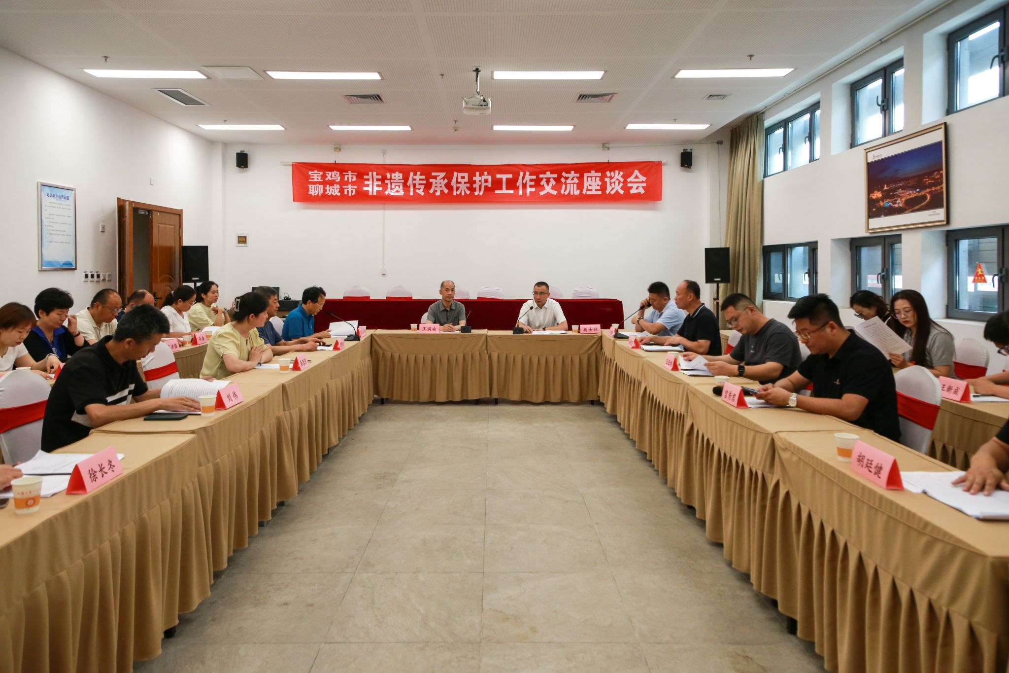 座谈会上,绥德县文旅局副局长马华荣介绍了绥德非遗保护整体工作,雒胜军重点阐述了“非遗+”融合发展模式。聊城市文旅局刘宪鹏分享了黄河运河交汇带(聊城)文化生态保护实验区的探索实践。双方就县区非遗保护做法、传承人管理、文旅融合等议题进行了深入交流。