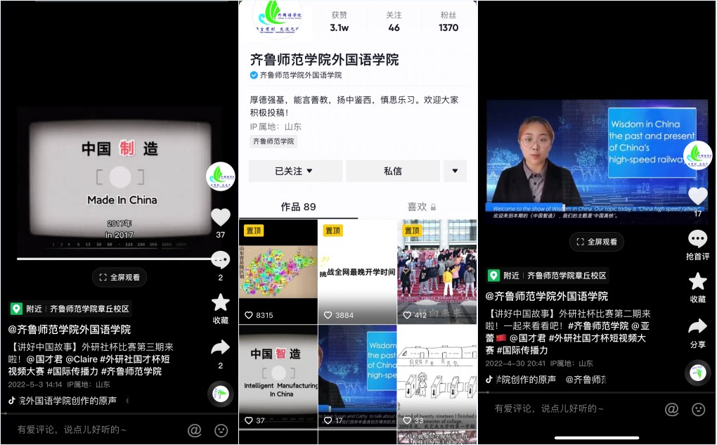 外国语学院通过抖音官方号和微信官方公众号两大媒体平台开设青年专栏。抖音官方呈现的是“青年讲好中国故事”专题,同学们依托专业基础制作了一系列英文短视频,通过阐释国内智能技术应用开发、中国高铁飞速建设发展、新冠疫情防控措施等向世界讲述中国社会发展故事,以青年的角度看中国发展,展现了浓厚爱国情怀。