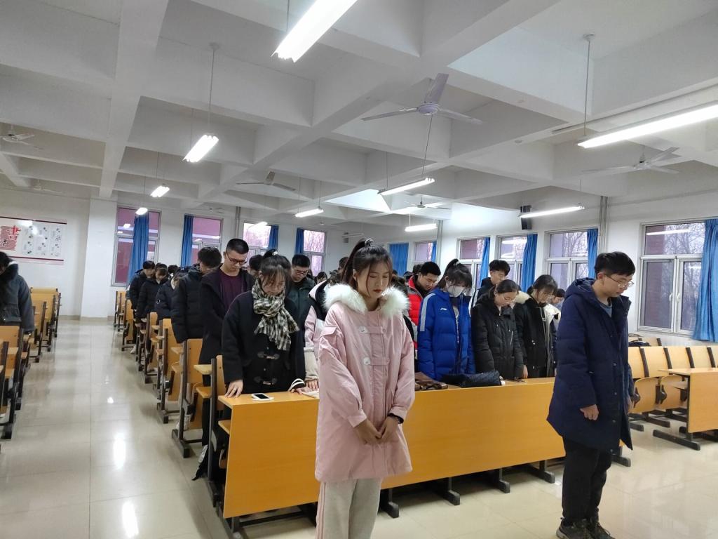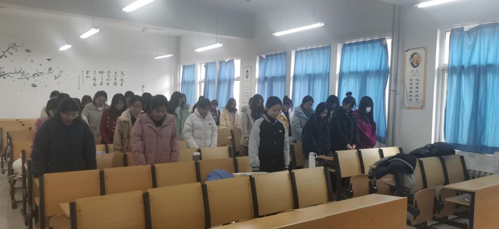 当天,学生党支部在二教B406会议室集体举行哀悼仪式,各班级以主题团会的形式在各教室进行哀悼。