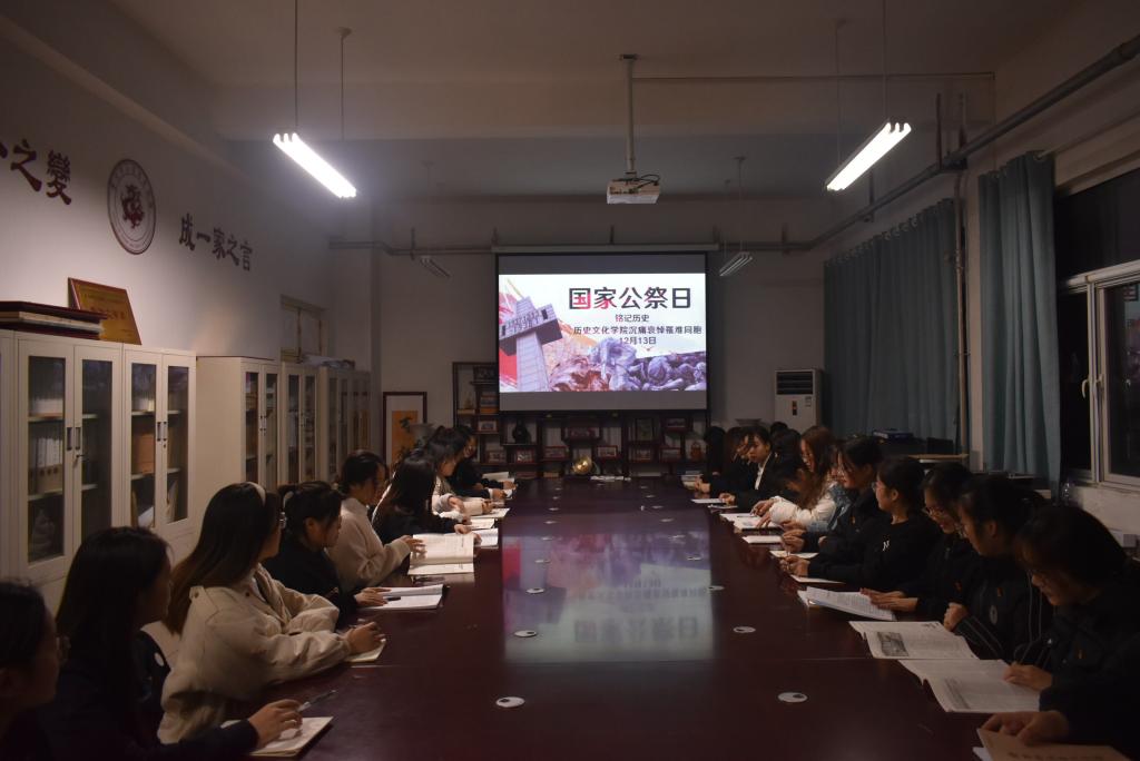 12月13日,历史文化学院组织师生进行国家公祭日哀悼仪式,缅怀逝去的先烈和同胞,寄托哀思。
