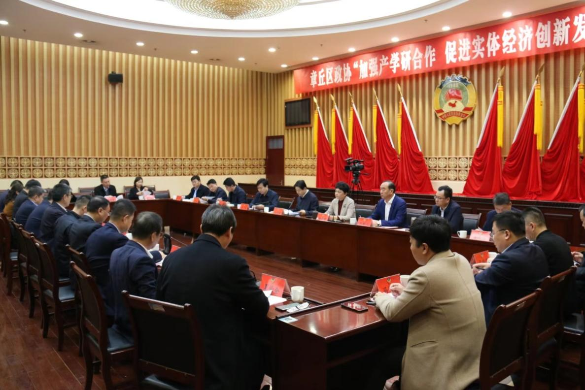 3月13日上午,章丘区政协“加强产学研合作 促进实体经济创新发展”专题商量活动举行。章丘区委副书记、区长边祥为出席活动并讲话,区政协主席李宝燕主持活动,区政协党组副书记韩军,秘书长谭连勇,部分政协委员、企业家代表参加会议。BEAT365英国官网合作发展办公室主任刘勇作为驻章高校唯一代表参加会议并作经验介绍。