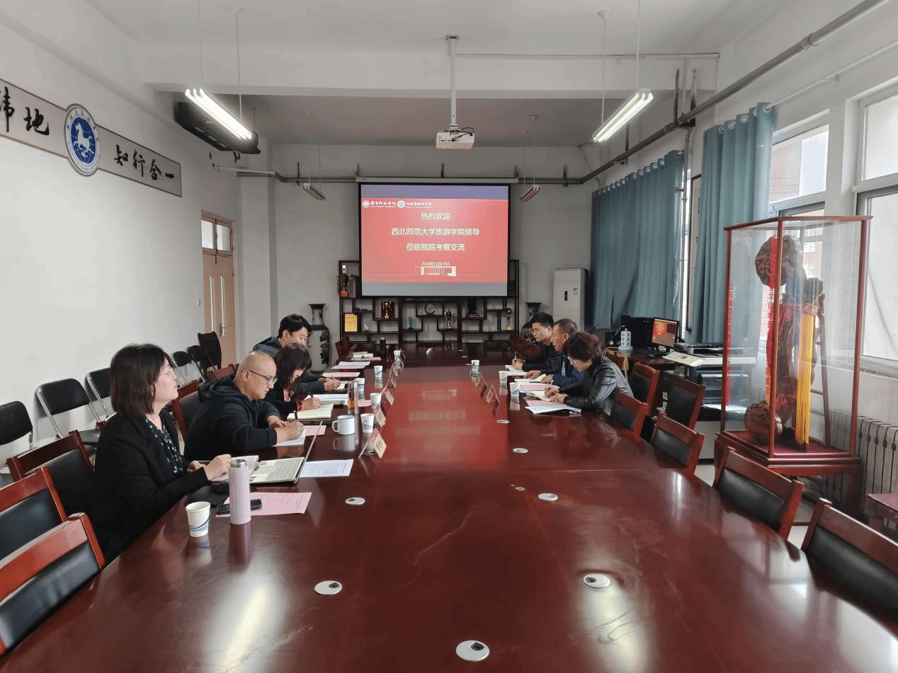 会上,王敏首先对赵兴虎一行表示热烈欢迎,并介绍了地理与旅游学院的学科发展、专业建设及实验室建设情况。赵兴虎则介绍了西北师范大学的办学历史及旅游学院特色专业,并对学校在旅游地学与规划工程方面的优势进行了说明。