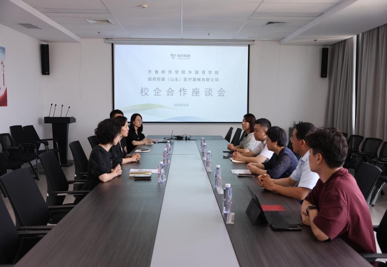为进一步深化校企合作,拓宽学生就业渠道,推动人才培养与企业需求的精准对接,6月6日,外国语学院党政班子一行前往国药控股(山东)医疗器械有限公司开展访企拓岗活动。国药控股(山东)医疗器械有限公司公司总经理彭媛玲,党支部书记、副总经理张冬,总经理助理张洋参加交流活动。