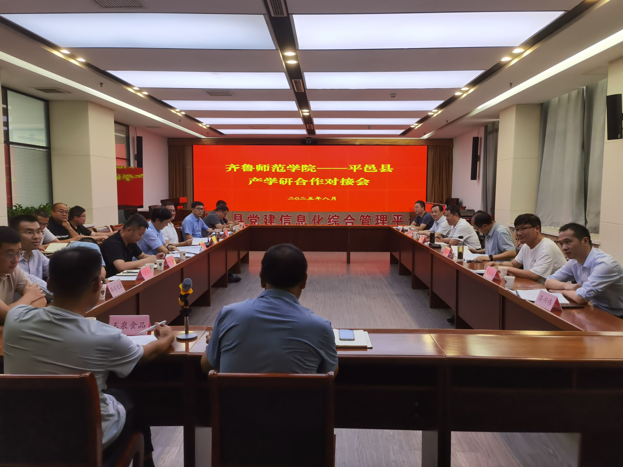 平邑县教体局副局长夏洪文介绍了家校社协同育人、教师教育培训、师范生实习就业等方面的需求,平邑县金银花产业协会、山东中平药业有限公司、平邑方圆药业有限公司、山东路美交通设施有限公司、山东冠通交通设施有限公司、山东玉泉食品有限公司、山东旺多多食品有限公司、临沂市清甜食品有限公司、山东沃尔新材料有限公司等公司负责人介绍了公司基本情况和产学研合作需求。