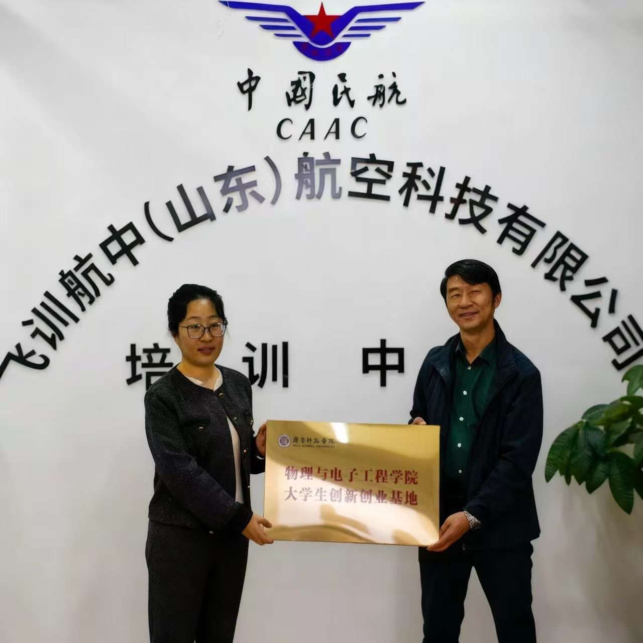 物理与电子工程学院赴飞训航空(山东)航空科技有限公司开展访企拓岗暨创新创业基地揭牌活动
