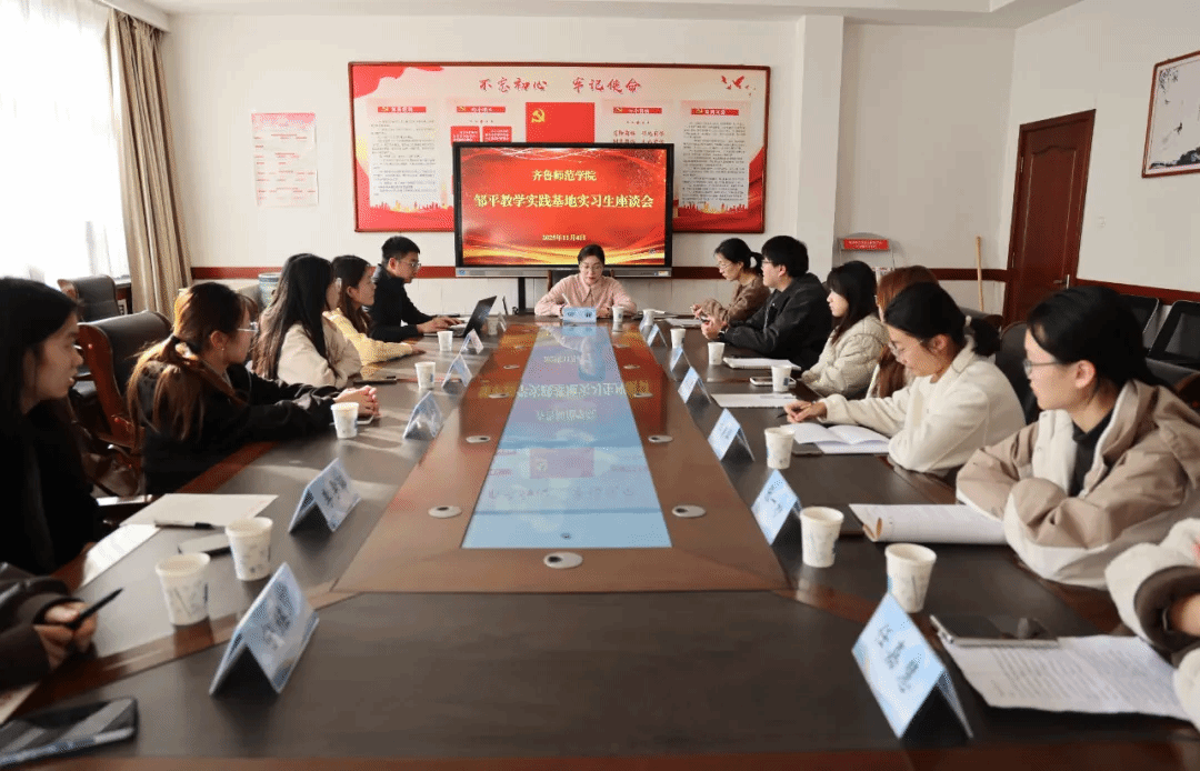 在实习学生座谈会上,田甜、魏梦琦与11名实习生代表开展座谈,深入了解实习生工作生活状况、教学实践进展及遇到的问题,现场解答相关疑问并给予专业指导。