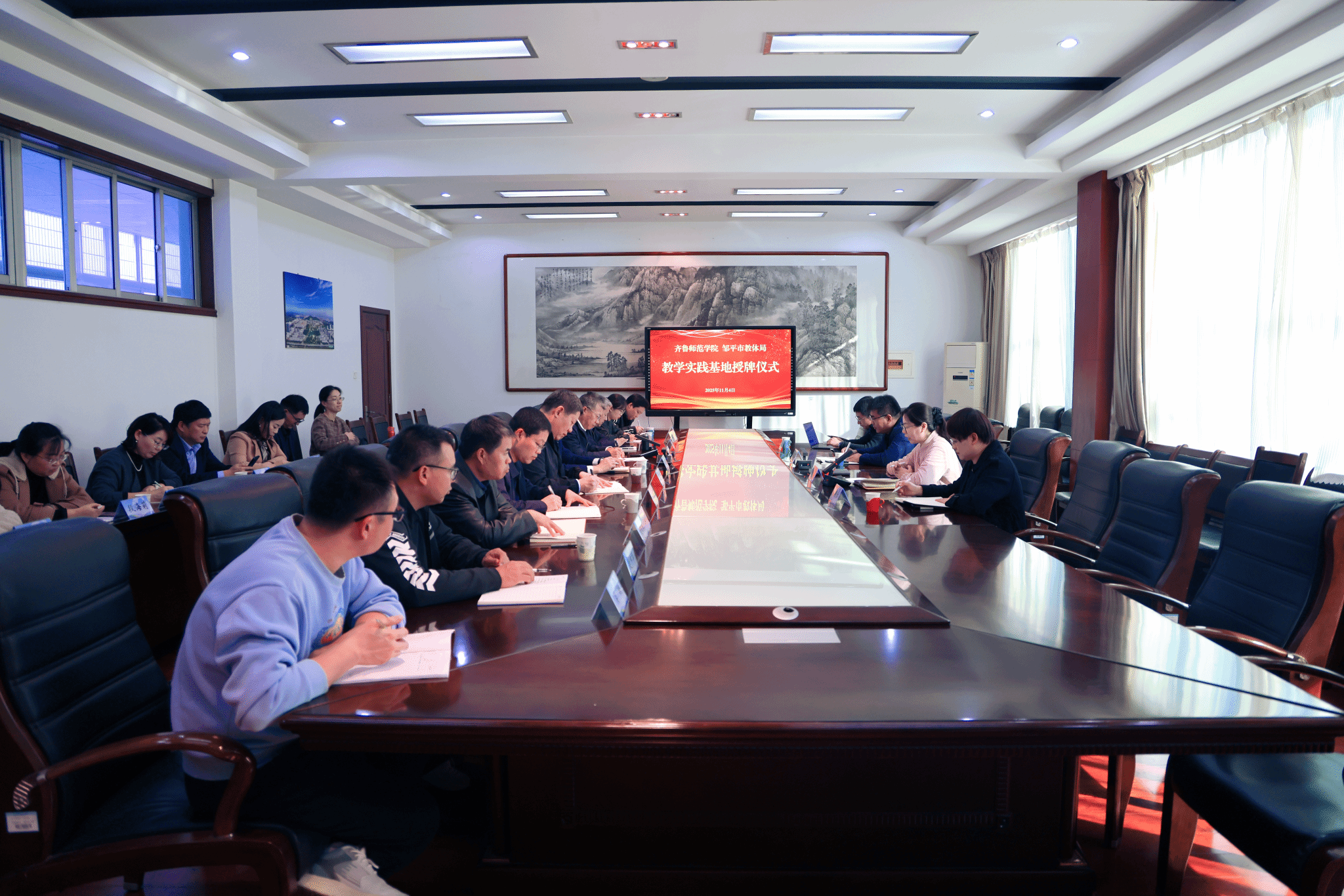 为深化校地协同育人机制,优化实习实践人才培养模式,拓展优质教学实践资源,11月4日,教务处处长张克玉、副处长田甜、实践教学科魏梦琦一行赴邹平市开展调研交流,并与当地学校举行教学实践基地揭牌仪式。