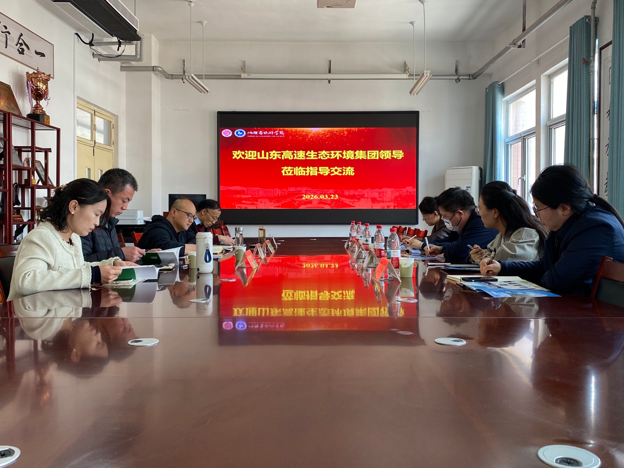 3月23日下午,山东高速生态环境集团党委委员、副总经理徐琨一行到访地理与旅游学院,就深化校企合作、推动产教融合、联合开展社会服务等事宜展开深入交流座谈。学院党委书记秦拓、学科带头人巩合德教授及部分教师代表出席会议,座谈会由学院副院长惠洪宽主持。