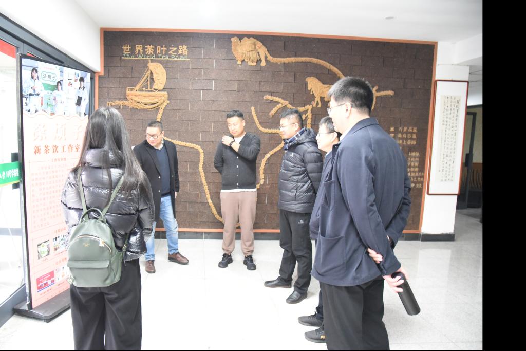 考察组一行先后参观了中国茶谣馆、新茶饮实验室等相关教学科研设施,王磊详细介绍了实验室建设和学生实践情况。浙江农林大学茶学与茶文化学院先后获批“浙江省文化艺术本科实验教学中心”“浙江省非遗传承教学基地”“浙江省‘十四五’省级重点建设实验教学示范中心”。目前,该学院建设有茶学、文化产业管理(茶文化)两个本科专业,茶学专业着重培养具有茶文化特质的茶学领域科技人才,文化产业管理(茶文化)专业则培养以茶文化为优势的文化产业管理人才,该类专业人才属国内首创,着力培养茶文化非物质文化遗产保护传承发展领域的骨干及茶文化国际传播使者。