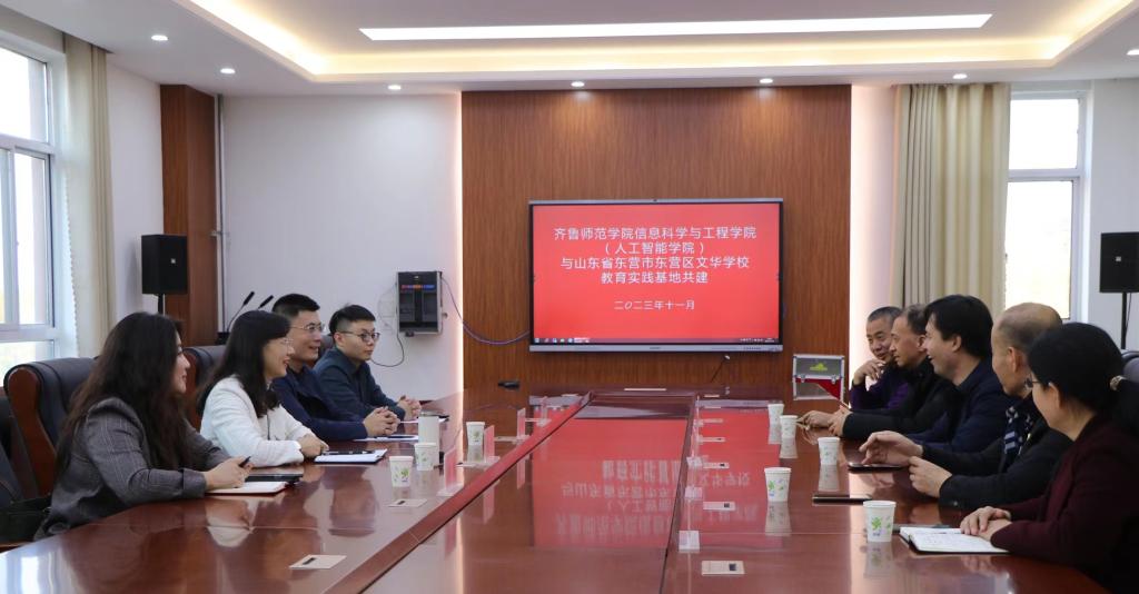 为进一步了解基础教育对信息技术课程师资的需求,深入推进师范生实践教学改革发展,构建毕业生追踪指导机制,切实做好学生实习实践工作,不断提高师范生人才培养质量,11月19日,BEAT365英国官网信息科学与工程学院(人工智能学院)党委书记赵青、院长杜建彬、团总支书记李绚及辅导员刘树昊一行赴东营市东营区文华学校进行交流合作座谈及实践教学签约挂牌仪式。