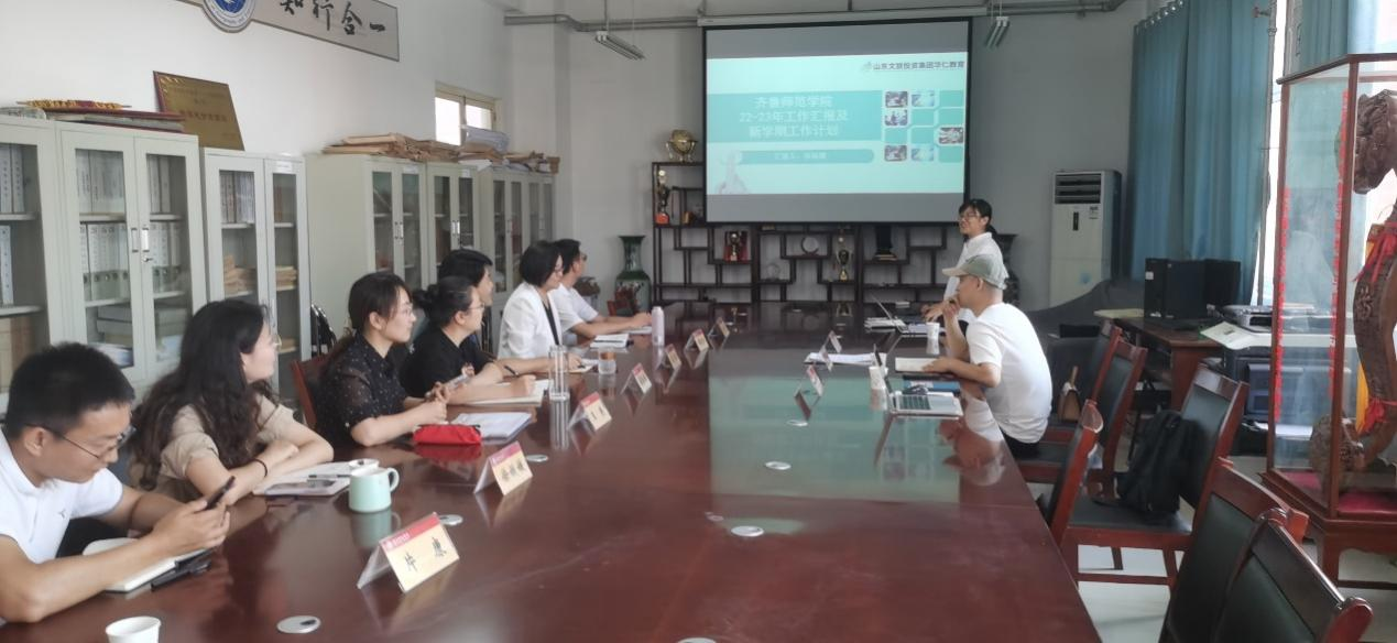 为加强校企协同专业共建,整合校企双方优势资源,培养一流人才,9月5日,山东文旅投资集团华仁教育产业学院副院长曹萌一行3人到地理与旅游学院座谈调研,双方就旅游管理与服务教育专业校企合作专业建设相关问题进行了深入交流。学院党委书记秦拓、旅游管理教研室专业负责人、教研室主任及相关老师参加了会议。
