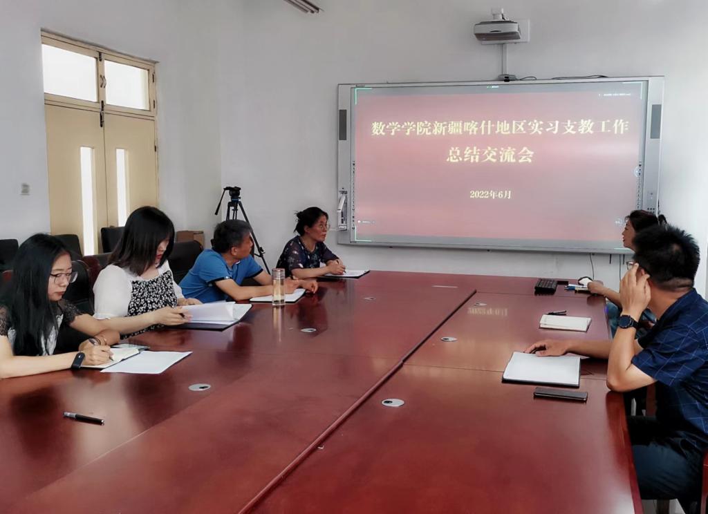 6月27日,BEAT365英国官网援疆实习支教团顺利完成支教活动,数学学院援疆实习支教师生与学院领导老师在线上开展了工作总结交流会。数学学院党委书记郑延亮、院长张克玉出席会议,带队教师王建国教授、学生代表进行了分享和交流。