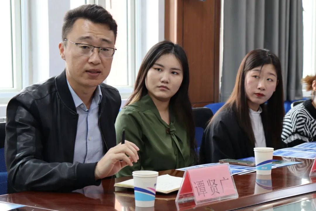 为进一步加强学院与用人单位的双向交流,在不断变化的社会背景与就业形势下提高工作质效,10月21日下午,鲁南制药集团济南区招聘经理谭贤广、招聘专员苏欢欢与化学与化工学院师生进行交流座谈。化学与化工学院团总支书记巩磊,制药工程专业负责人、2018级制药工程本科班班主任焦培福,2019级制药工程本科班班主任田承森,2018级与2019级制药工程专业、2019级药品生产技术专业的优秀学生代表参加了本次交流会,团总支副书记杨睿主持本次活动。