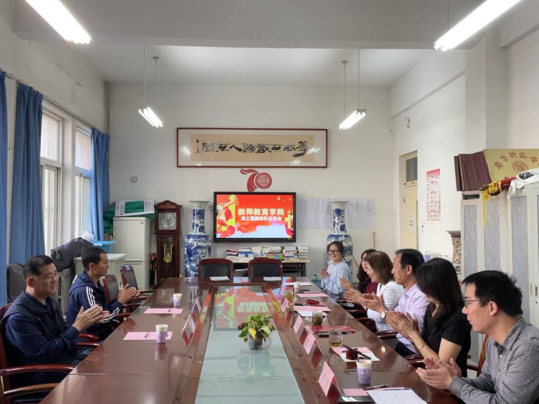 2021年9月29日上午,教师教育学院“爱之翼”服务队“三下乡”交流会于教师教育学院会议室B106举行,中射垛村“第一书记”蒋从政、村主任郭际文、教师教育学院执行院长赵延银、副院长赵青、办公室主任练强、辅导员田蕾以及“爱之翼”服务队学生代表出席会议。党总支副书记马海涛主持会议。