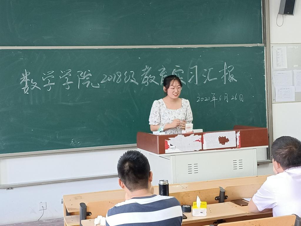 2021年6月26日上午,数学学院2018级师范生支教实习总结交流会在二号教学楼A412教室召开,数学学院党总支书记孔志学、实习指导老师以及实习学生参加会议。至此,自2021年3月8日至6月25日为期四个月的实习工作圆满完成。