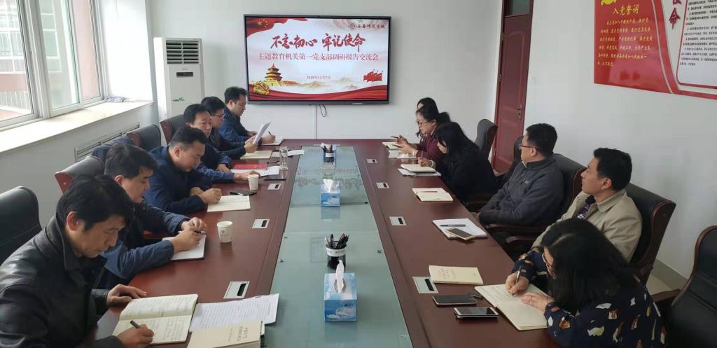 11月7日上午,机关第一党支部在图书馆C216会议室召开了“不忘初心、牢记使命”主题教育调研报告交流会。交流分享调研成果,分析检视调研中发现的问题,研究讨论解决问题的思路举措。第一党支部党委办公室、校长办公室及组织部全体党员干部参加了本次交流会,主题教育校内指导督查组马维军处长、谢钊科长莅临指导,会议由支部书记牟伟主持。