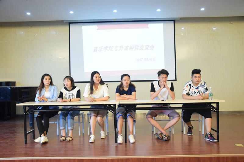 2017年山东省“专升本”考试录取工作已结束。我院创下了历年专升本的最好成绩。本次2014级专科“专升本”考试有37名学生被本科院校录取,其中泰山学院15人,济宁学院8人,枣庄学院14人。为让我院学子更好地了解关于专升本方面的知识并为以后顺利专升本做好铺垫,2017年6月1日,音乐学院在音乐厅举办专升本经验交流会。邀请了我院2014级考入枣庄学院、济宁学院和泰山学院的宋帅林、岳一凡、林益青、李晟、杨露、李壮六位同学为大家做专升本的经验交流,交流会由辅导员王海波老师主持。