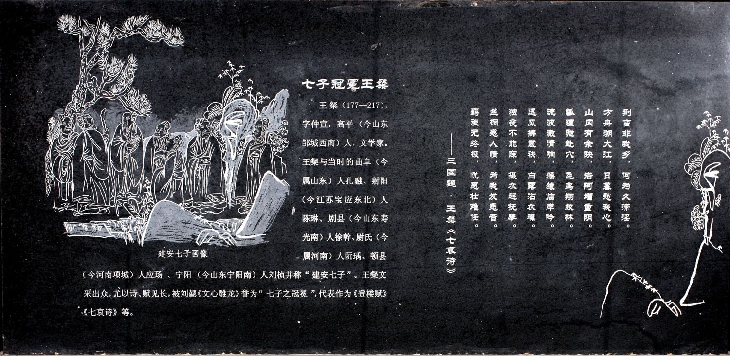 走进东汉末年的文人的世界,感受战火纷飞中的“建安风骨”。其中最为我们所熟知的有“建安七子”、“三曹”等人。而这块碑刻的主人公便是素有“七子冠冕”之称的东汉末年著名文学家——王粲。