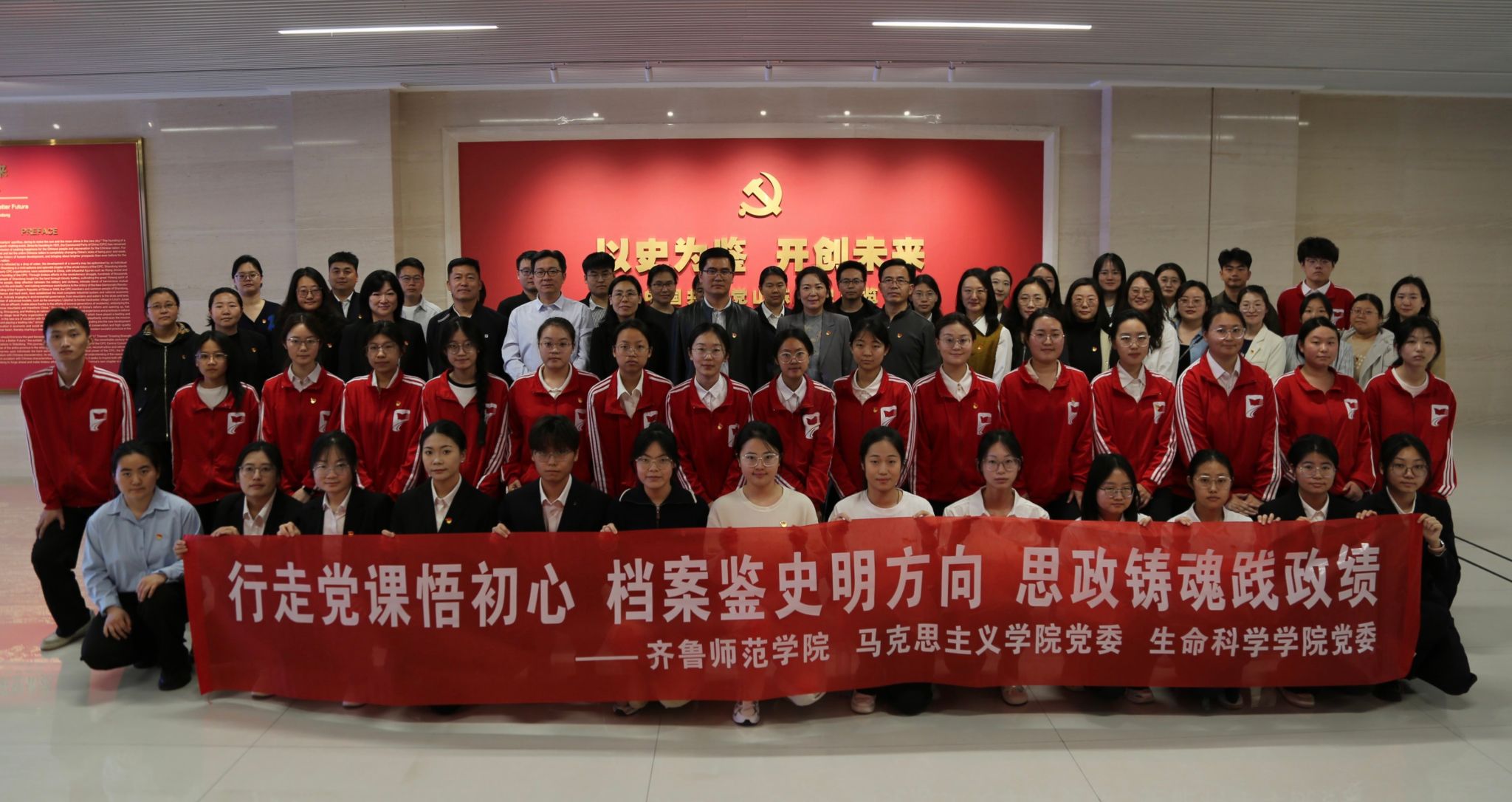 为扎实开展树立和践行正确政绩观学习教育,抓好关键岗位重点深学,筑牢党员思想根基,4月15日,马克思主义学院党委与生命科学学院党委联合开展“行走党课悟初心 档案鉴史明方向 思政铸魂践政绩”主题党日活动。两个学院的班子成员,教师党支部、学生党支部书记和委员,部分师生党员赴山东省档案馆参观学习,以实地研学感悟初心使命、凝聚奋进力量。
