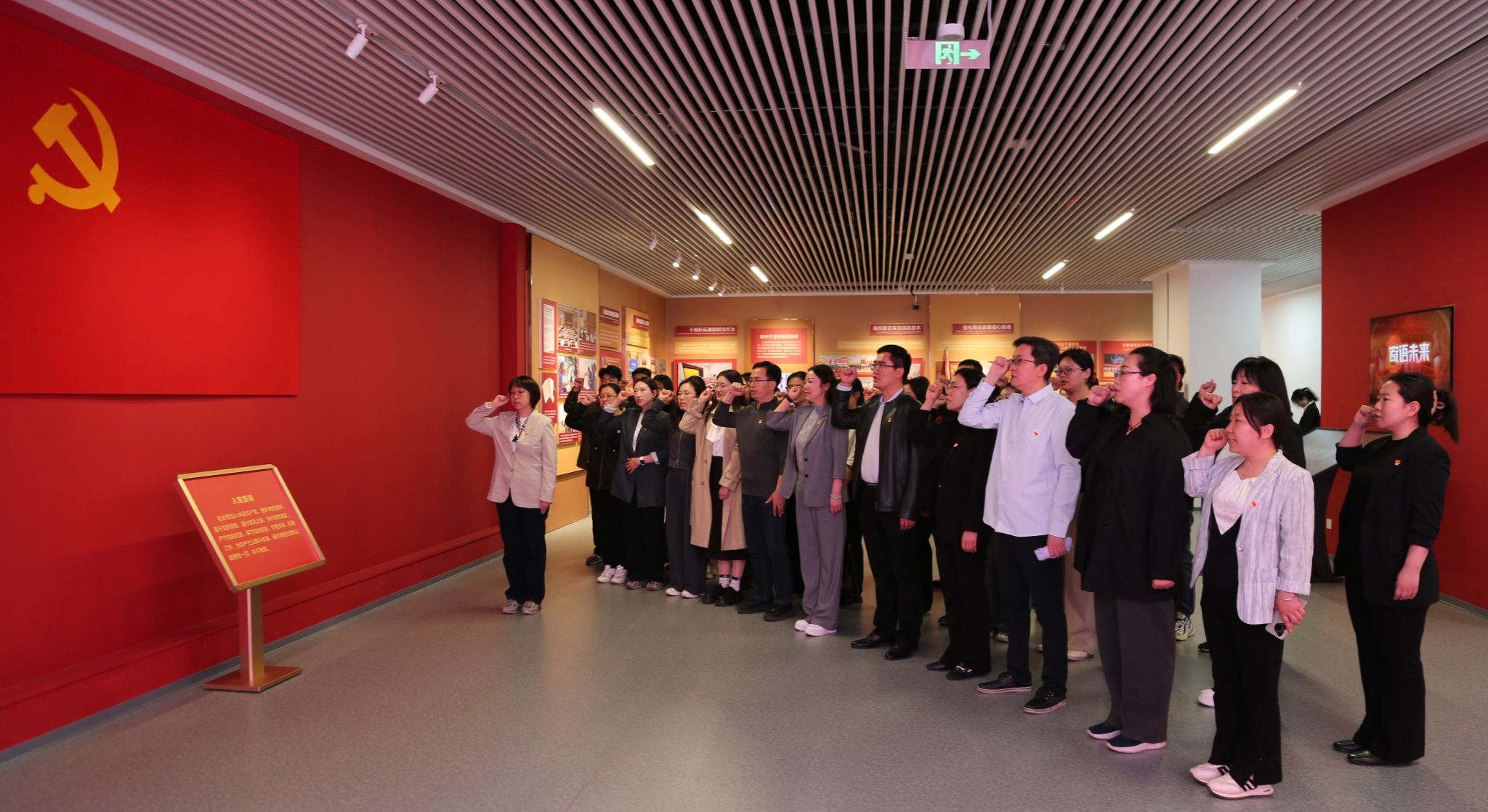 在“以史为鉴、开创未来”主题展览中,党员们依次参观“浴血奋战、百折不挠”“自力更生、发愤图强”“解放思想、锐意进取”“自信自强、守正创新”四个展区,通过大量历史图片、文物展品及多媒体展陈,全面回顾山东党组织在党中央领导下,团结带领全省人民砥砺奋进的百年壮阔历程。参观过程中,全体党员认真聆听讲解、驻足观看史料,深刻感悟党的奋斗历程与初心使命,接受了深刻的党性教育。