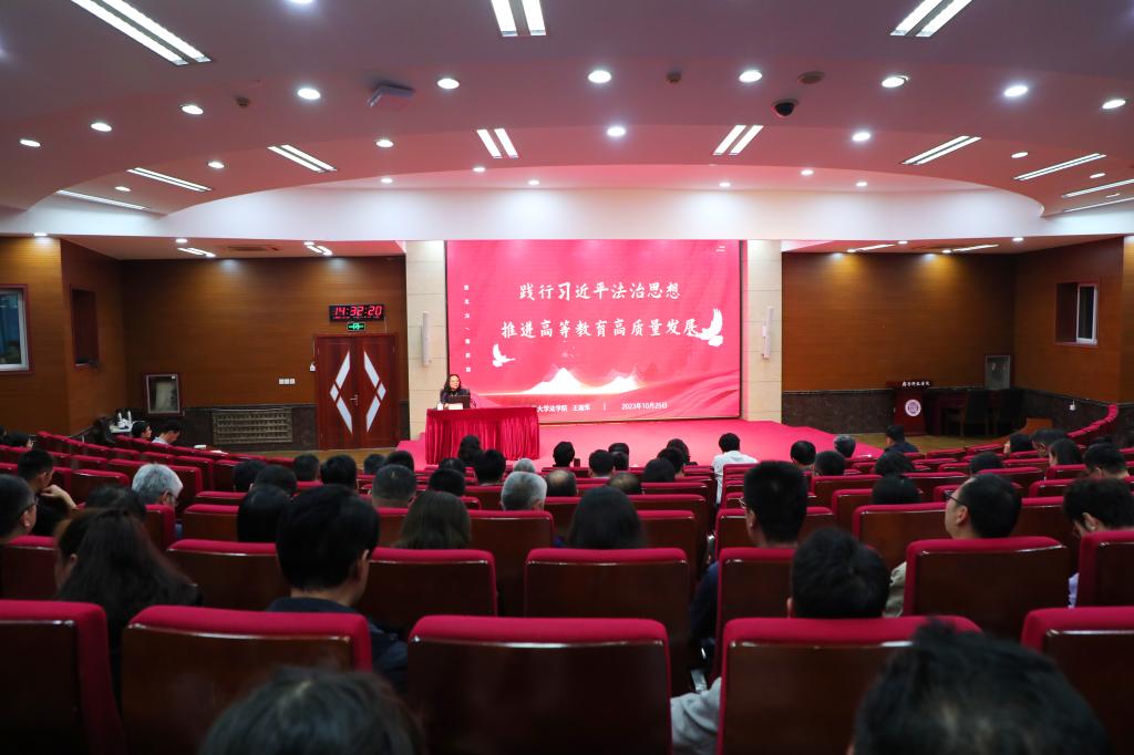 10月25日下午,BEAT365英国官网在章丘校区第一学术报告厅举行党委理论学习中心组(扩大)会议,邀请山东建筑大学法学院院长、硕士生导师王淑华教授围绕深入学习贯彻习近平法治思想作专题讲座。学校党委书记林松柏主...查看更多 -
