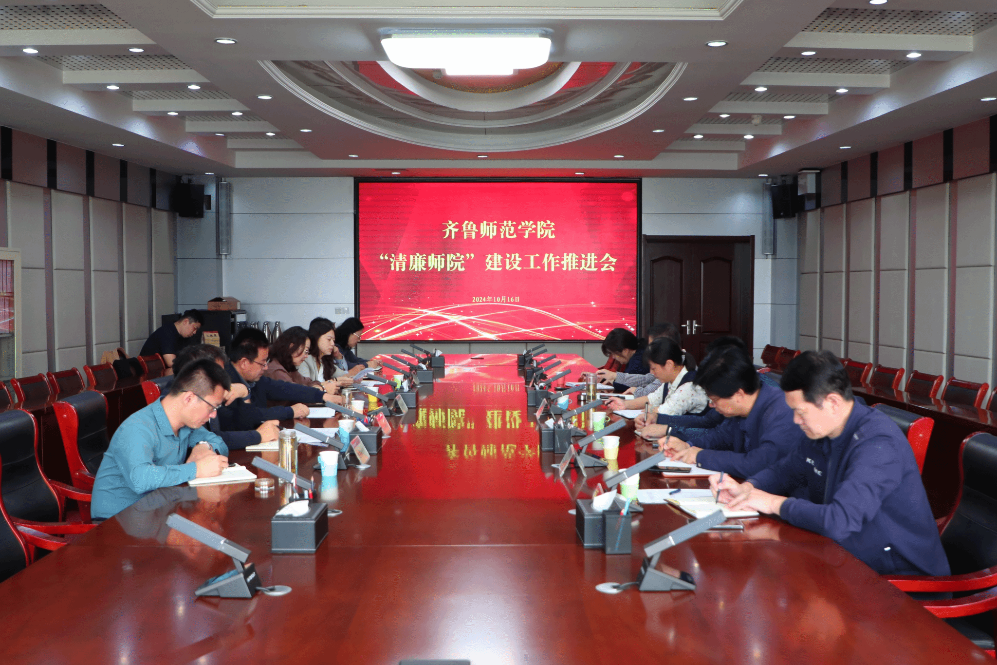 10月16日上午,学校召开“清廉师院”建设工作推进会,党委委员、纪委书记、监察专员高明辉主持会议并讲话,建设工作有关责任单位负责人出席会议。会上,传达学习了全面建设清廉山东工作联席会议第一次全体(扩大...查看更多 -