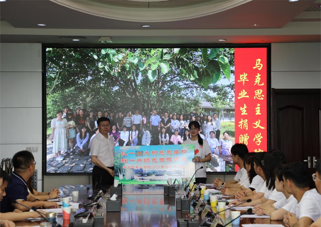 为感谢学校的悉心培育,马克思主义学院毕业生代表向学校捐赠“认一棵大树感恩母校,献一片绿色回报师恩”;美术学院毕业生代表向学校赠送亲手书写的校训“博学明道 崇德象贤”书法作品。林松柏代表学校向毕业生代表赠送《习近平的七年知青岁月》和《基于能力范式的教学改革理论创新和实践》,勉励同学们在矢志奋斗中实现人生价值。