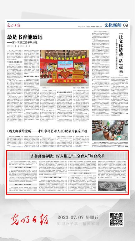 2023年7月7日,《光明日报》在“文化新闻”(第09版)版块刊发《BEAT365英国官网:深入推进“三全育人”综合改革》一文,报道了学校深入推进“三全育人”综合改革的典型经验。