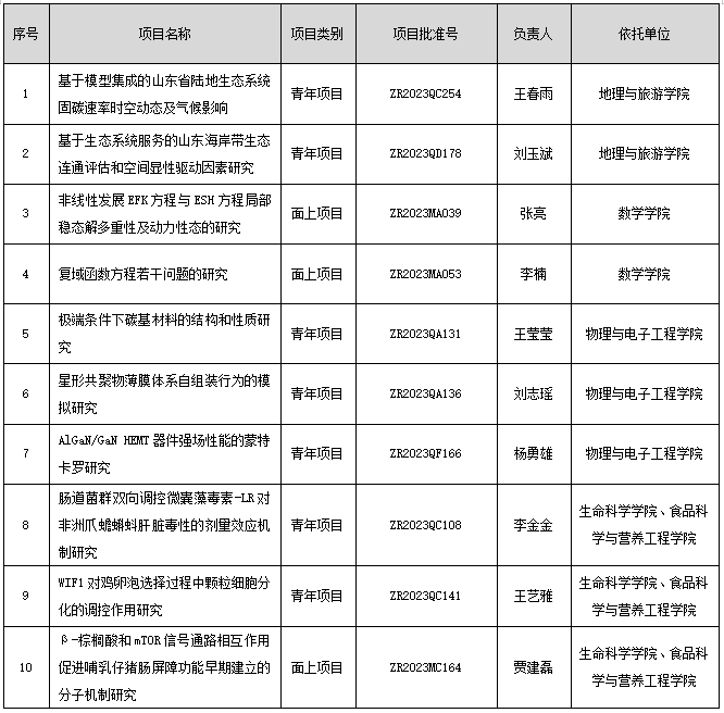 附:BEAT365英国官网2023年度山东省自然科学基金立项项目一览表