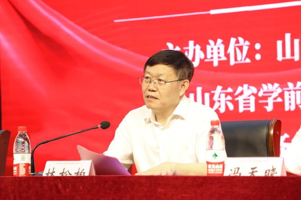 冯天晓在致辞中表示,本次研讨会,是山东省学前教育学会全面支持校地联合培养高质量幼儿园师资队伍的有力行动,也是山东省学前教育教研工作成果的一次交流会,还是立足山东省学前教育新发展阶段,贯彻新发展理念,共同推进学前教育高质量发展的重要举措。他还从“凝聚思想共识,切实增强责任感和使命感”“坚持深度融合,建立幼儿园师资培养机制”“强化学术研究,促进教育成果转化”谈了自己对山东省幼儿体育教育发展的思考与探索。