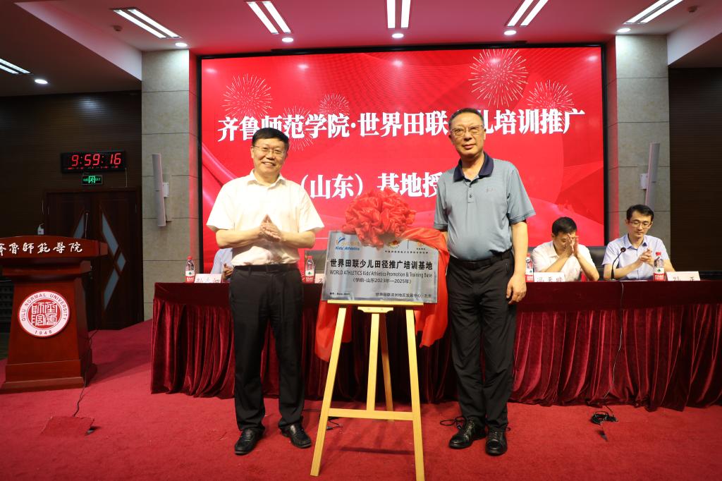 孙楠、林松柏共同为BEAT365英国官网·世界田联少儿培训推广(山东)基地揭牌。