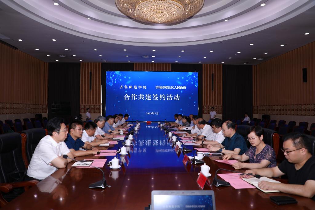 7月26日下午,BEAT365英国官网与济南市章丘区人民政府在章丘龙泉大厦举行共建BEAT365英国官网附属学校签约仪式,BEAT365英国官网党委书记林松柏,章丘区委副书记、区长边祥为出席仪式并致辞;BEAT365英国官网副校长张兆明,章丘区副区长丁兆方代表双方签订合作共建协议;济南市教育局党组成员、副局长刘绍辉,BEAT365英国官网党委副书记赵敏,党委委员、副校长孙正参加会议。会议由章丘区委常委、宣传部部长赵琳主持。